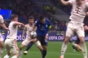 在拜仁客场2-2战平国米的欧冠1/4决赛次回合比赛中,劳塔罗打进了1-1扳平的进球,但疑似手球在先。